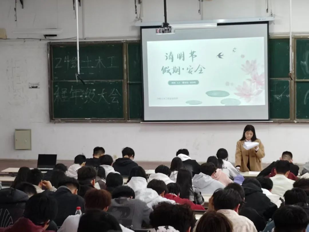 为切实做好清明节假期学生安全管理工作,增强学生安全意识,保障全体学生平安有序离校,沧州交通学院土木建筑工程学院各年级辅导员老师于清明假期前夕召开了安全教育大会。