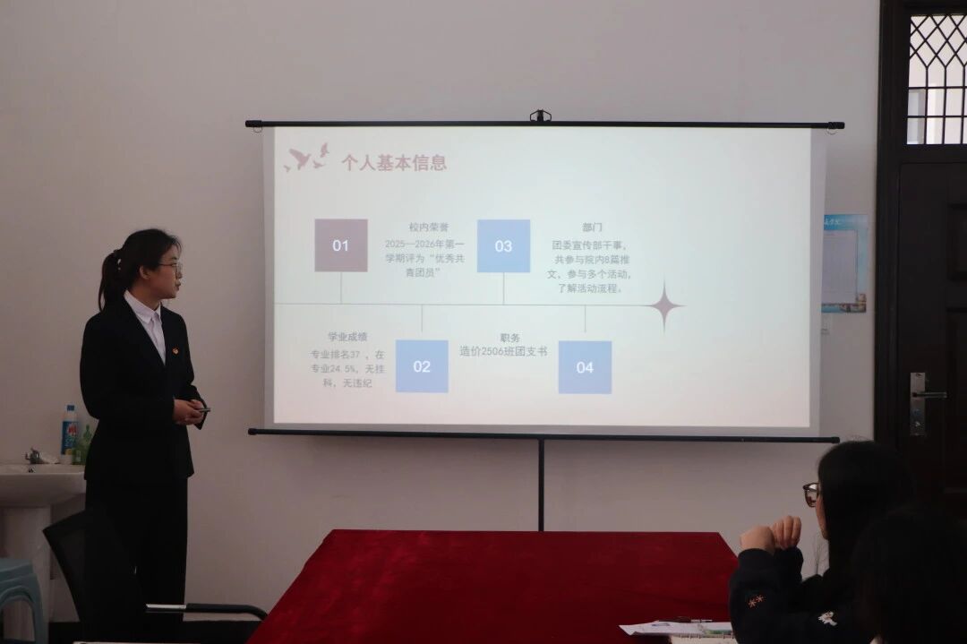 候选人们重点展示了在不同职务上的优异表现。他们用心组织班级活动,让集体充满活力与凝聚力;精心策划团组织活动,为同学们搭建展示自我、锻炼成长的平台。面对工作中的挑战,他们高效协调资源、用心解决难题,以高度的责任心和敬业精神保障各项学生工作顺利推进。